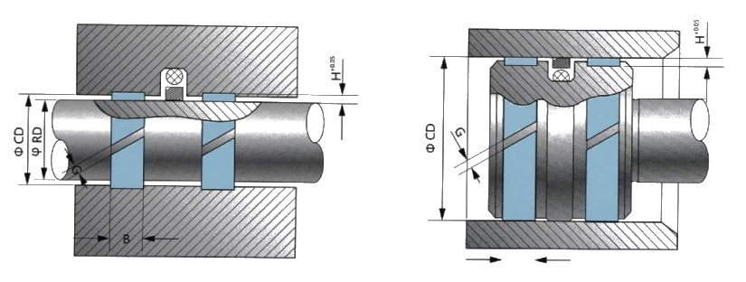 | Materiál | Tolerancia vonkajšieho priemeru CD | Tolerancia vnútorného priemeru d | Tolerancia hrúbky steny H | Tolerancia šírky B | Incízia OD CD | Rez G | Tolerancie rezu |